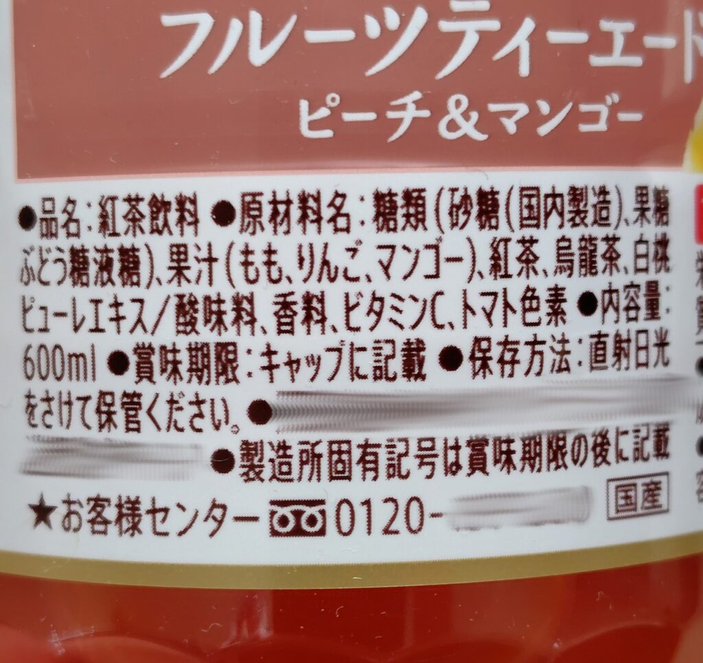 S社の「フルーツティーエード_ピーチ&マンゴー」に使用されている食品添加物