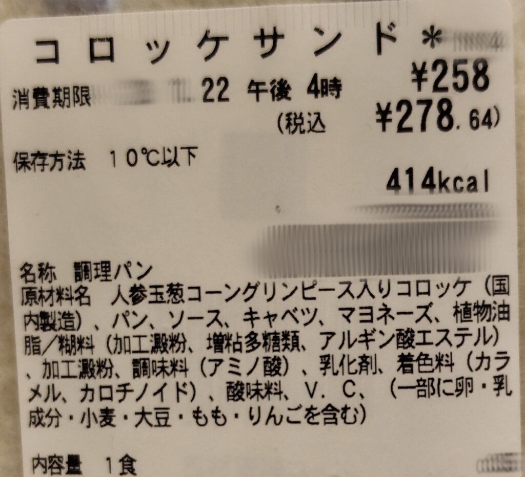 コロッケサンドに使用されている食品添加物